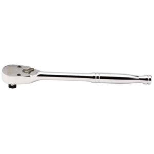 Forged from chrome vanadium steel hardened, tempered and satin finish. 72 tooth ratchet with lever forward/reverse selector and quick release mechanism. Spring – loaded ball bearing for secure socket holding. Soft grip handle for user comfort.
