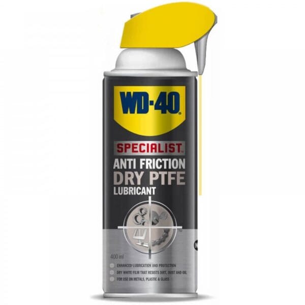WD-40 Specialist Dry Lubricant with PTFE provides enhanced lubrication, leaving a dry clear film that won-t attract dirt, dust or oil. It-s quick drying and also great as a mould release agent.
